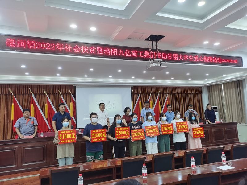 愛(ài)是與生俱來(lái)的,在血液里流動(dòng),在骨子里結(jié)晶,它源源不斷的由心而生,永不枯竭,只要人人都愿意奉獻(xiàn)一點(diǎn)愛(ài),就如甘霖沐浴大地,人間處處盛開(kāi)幸福之花! 為響應(yīng)洛陽(yáng)市政府精準(zhǔn)扶貧政策,洛陽(yáng)九億重工集團(tuán)有限公司及董事長(zhǎng)王九茂積極參與捐資助學(xué)的慈善義舉活動(dòng),特做出如下決定:1、公司幫扶磁澗鎮(zhèn)2017年新招貧困大學(xué)生21名順利入學(xué),每人資助2000元,總計(jì)肆萬(wàn)貳仟元整; 2、總經(jīng)理王九茂(縣政協(xié)委員)以個(gè)人名義資助磁澗鎮(zhèn)南窯村2017年新招大學(xué)生6名,總計(jì)12000元整; 我相信,在社會(huì)各界的大力支持和共同努力下,我們的“愛(ài)心助學(xué)”活動(dòng)將會(huì)惠及到更多的同學(xué),為了夢(mèng)想,刻苦讀書(shū)、報(bào)銷(xiāo)祖國(guó),廣大同學(xué)也一定會(huì)在溫暖的社會(huì)大家庭里茁壯成長(zhǎng),必將成為國(guó)家建設(shè)的有用之才! 洛陽(yáng)九億重工集團(tuán)有限公司 董事長(zhǎng):王九茂